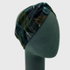 Schwarzes Twist Knot Haarband mit grafischem Blättermotiv.